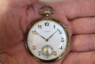 年代:1925年頃/ 手巻き / 17石 / Cal.- / ケース素材:K18YG エナメル装飾 / サイズ:約47mm(リューズ含まず) 竜頭:約7mm 厚さ:約18mm 価格:660,000円 |