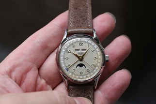 年代:1930年代 / 手巻き / 15石 / Cal.26.5.SOB.T2 / ケース素材:SS / サイズ:約30.5mm(竜頭含まず) 竜頭:約2.5mm 厚さ:約9.5mm 価格:462,000円 |