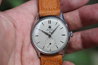 年代:1950年代 / 手巻き / 21石 / Cal.463 / ケース素材:メッキ・SS / サイズ:約34mm(リューズ含まず) 竜頭:約2.3mm 厚さ:約9.8mm 価格:198,000円 |